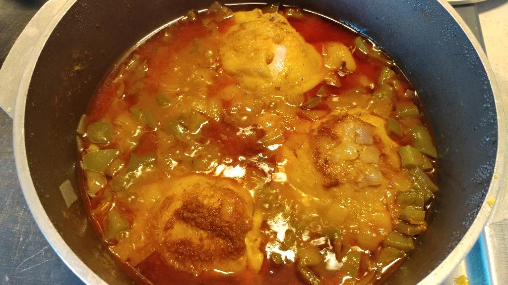 It can be cooked in one large pot with a heavy lid. It uses the most inexpensive (and one of the best) meats I know of, chicken thighs, making it very economical. You can substitute boneless, skinless thighs for an even easier dish.