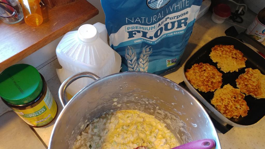 I made a huge batch with over 4 pounds of cabbage. This made 37 okonomiyaki! I froze most of these. They microwave really well! That's a lot of side-dishes or meals!