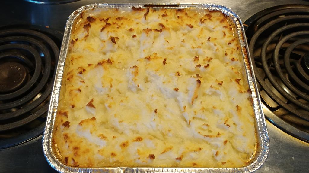 made two of those!) topped with boxed mashed potato filling. Roll your