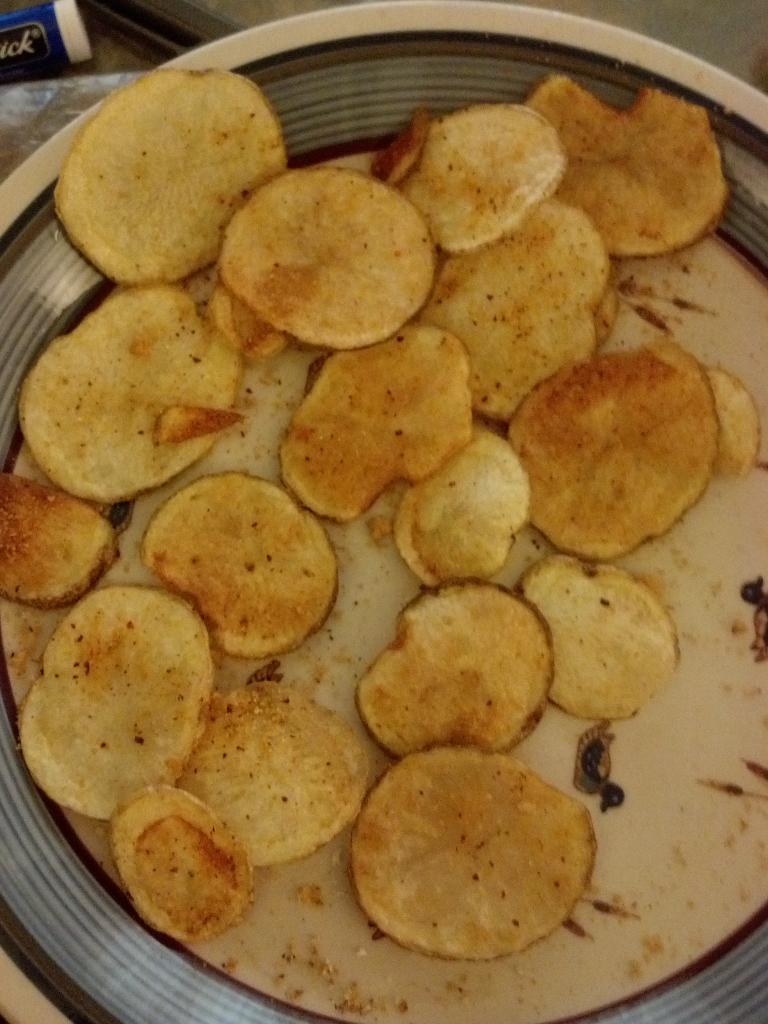 I prepared a couple of baked potatoes by first microwaving them (using the "potato" button) and then brushing them with a bit of olive oil and kosher salt and finishing them in a 400°F oven (for crispiness.)