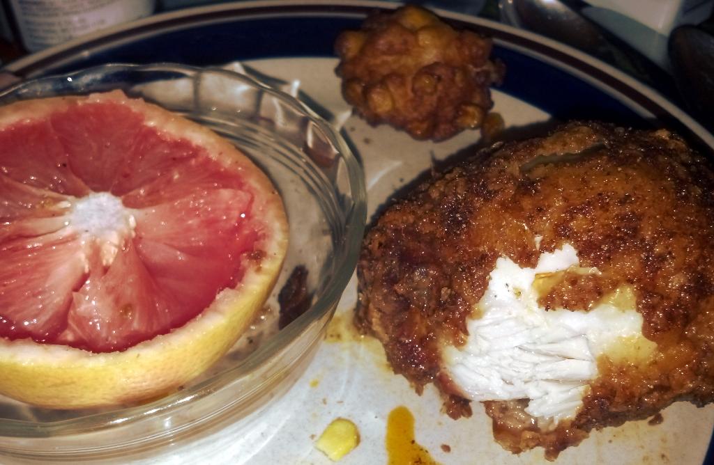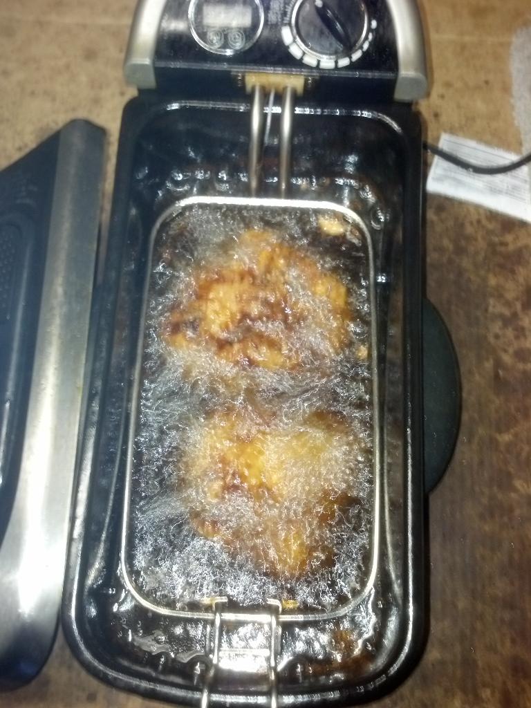For lunch I finally had a piece of the fried chicken (cold.) It was quite good! It probably cooked a bit too long, as the breading had a bit of an overcooked taste. Overall, good, though! I could have used a bit more seasoning in the flour itself. I forgot to put salt in the flour.